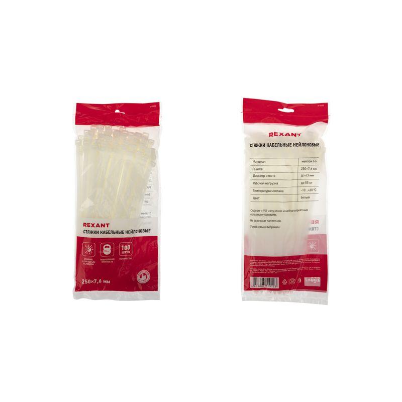 Хомут кабельный 7.6х250 нейл. бел. (уп.100шт) Rexant 07-0252