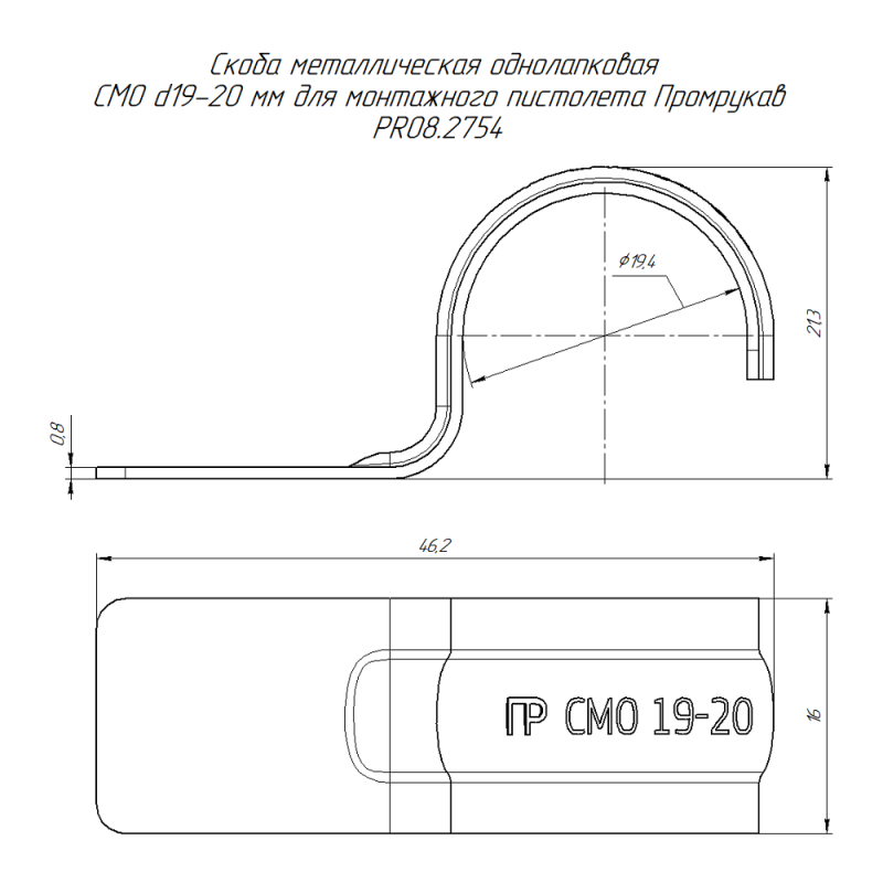 Скоба крепежная однолапковая СМО d19-20мм метал. для монтаж. пистолета без отверстий (уп.100шт) Промрукав PR08.2754