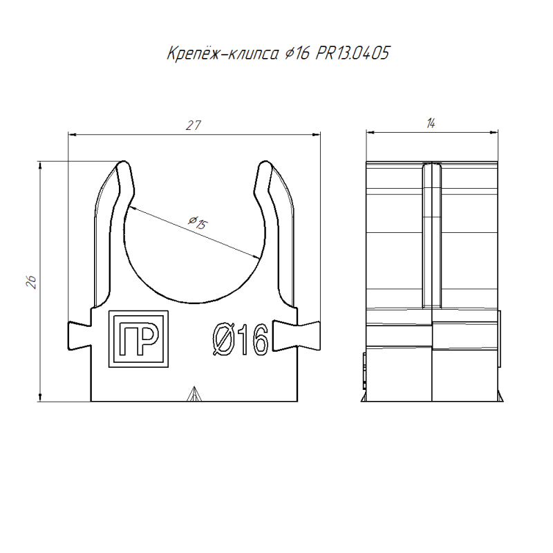Держатель для труб (клипса) d16мм для монтажного пистолета атмосферостойкая черн. Промрукав PR13.0405