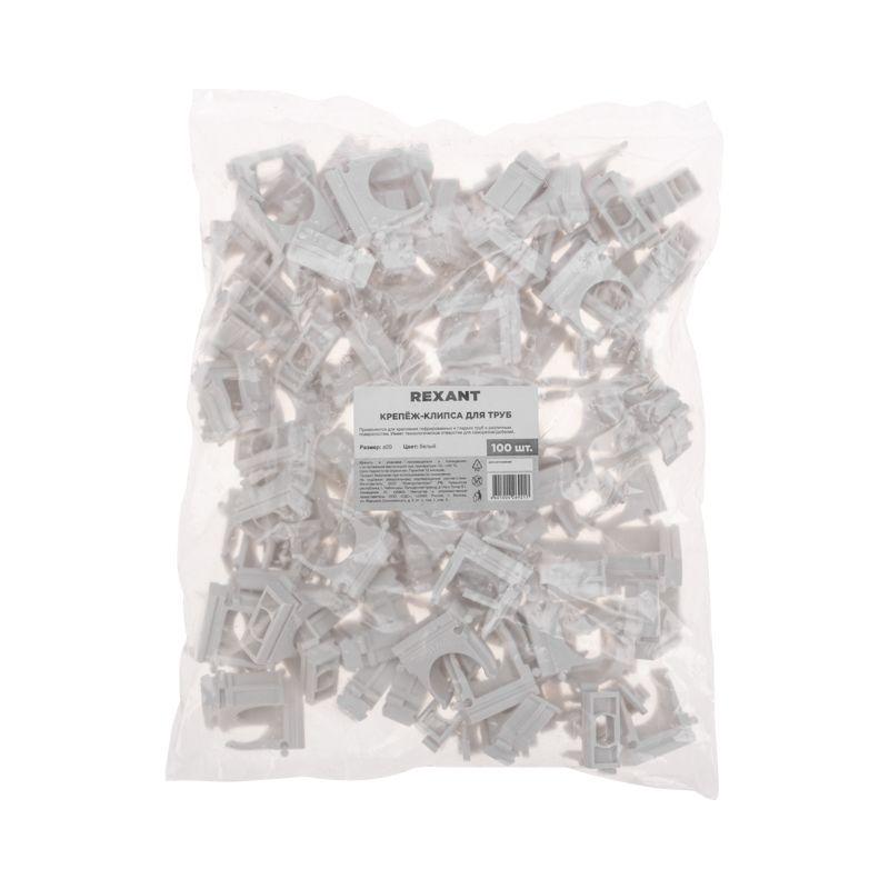 Держатель для труб (клипса) d20мм бел. (уп.100шт) Rexant 28-0120-6