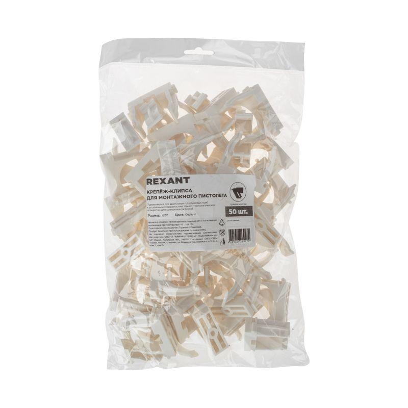 Держатель для труб (клипса) d32мм для монтажного пистолета бел. Rexant 28-0432-3