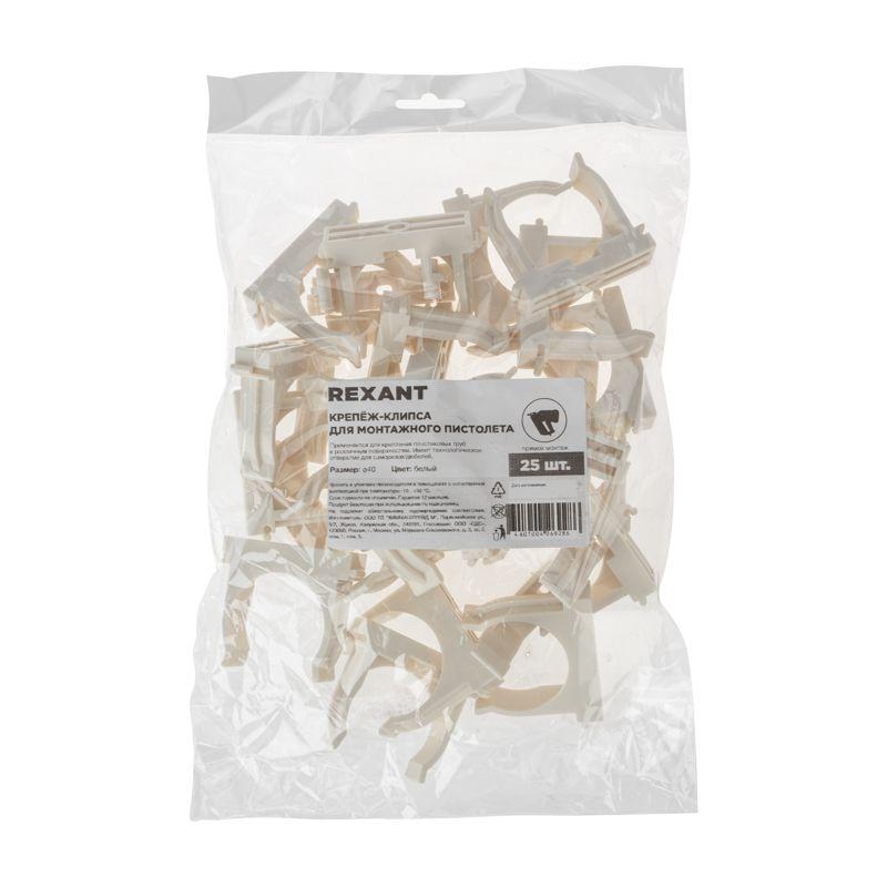 Держатель для труб (клипса) d40мм для монтажного пистолета бел. Rexant 28-0440-3
