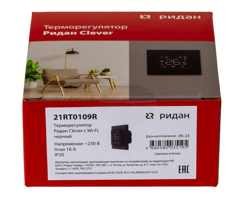 Терморегулятор Clever с Wi-Fi с комбинацией датчиков 16А черн. Ридан 21RT0109R