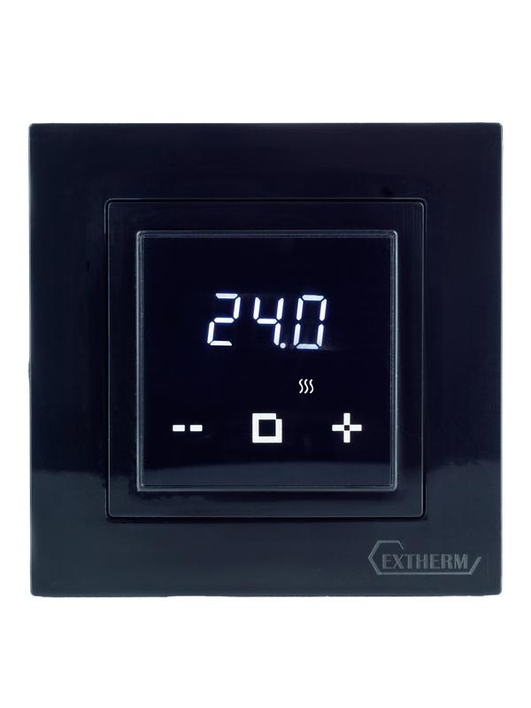 Термостат програмируемый с сенсорными кнопками и датчиком темпер. пола без расписания совместим с рамками с внутрен. размером 56х56мм Schneider Unica Exxact и Legrand Valena черн. Extherm ET-43(b)