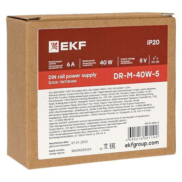 Блок питания на DIN-рейку 40Вт Uвх ~ 240В AC m Uвых - 5В DC постоянного тока EKF DR-M-40W-5