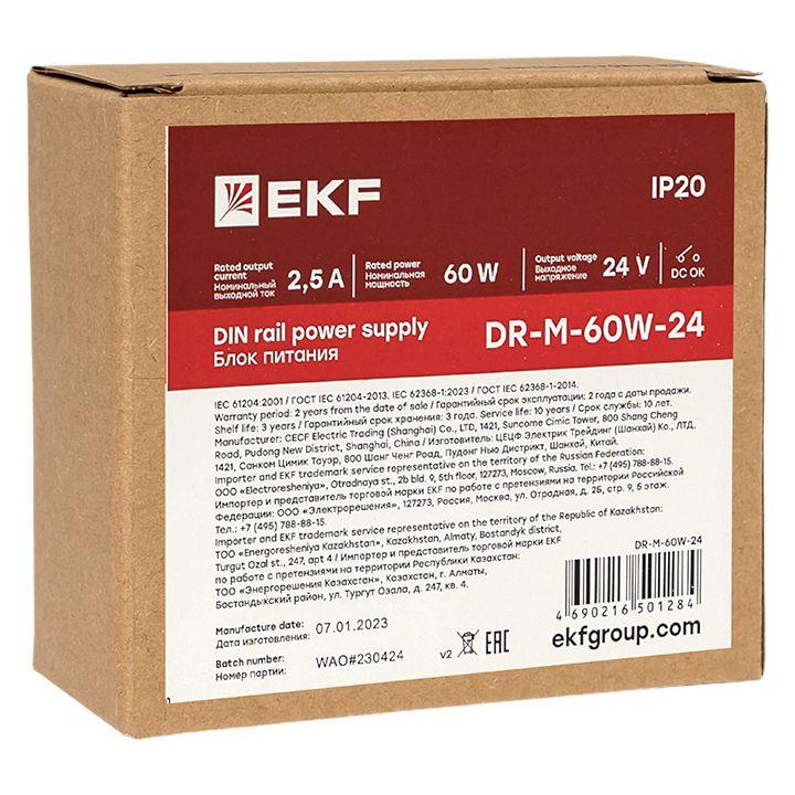 Блок питания на DIN-рейку 60Вт 220В AC/24В DC постоянного тока EKF DR-M-60W-24