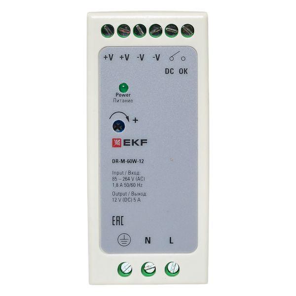 Блок питания на дин рейку 60Вт Uвх 220В AC m Uвых 12В DC постоянного тока EKF DR-M-60W-12