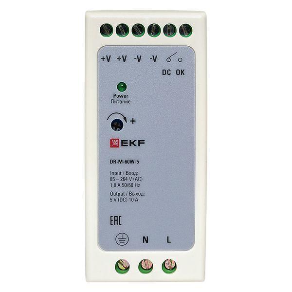 Блок питания на дин рейку 60Вт Uвх 260В AC m Uвых 5В DC постоянного тока EKF DR-M-60W-5
