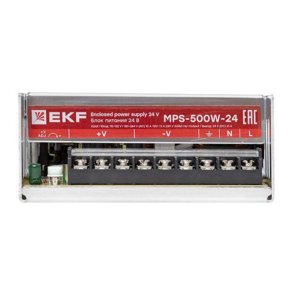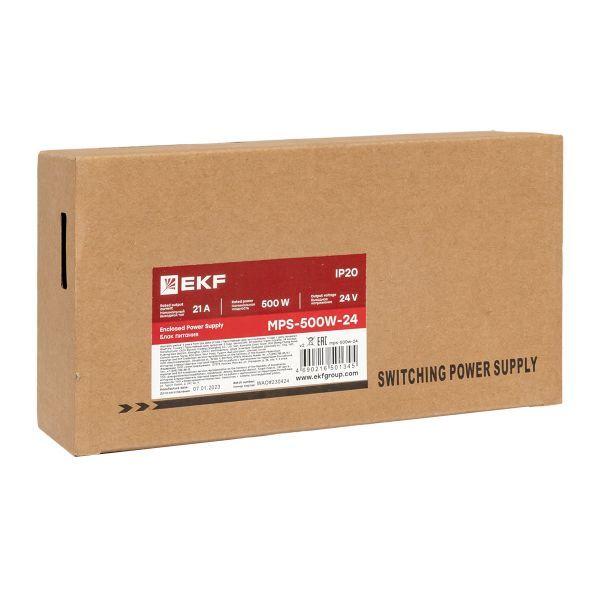 Блок питания на монтажную панель 500Вт Uвх 220В AC m Uвых 24В DC постоянного тока EKF MPS-500W-24