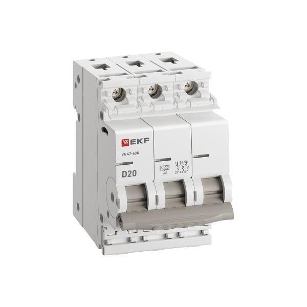 Выключатель автоматический модульный 3п D 20А 6кА ВА 47-63N PROxima EKF M636320D