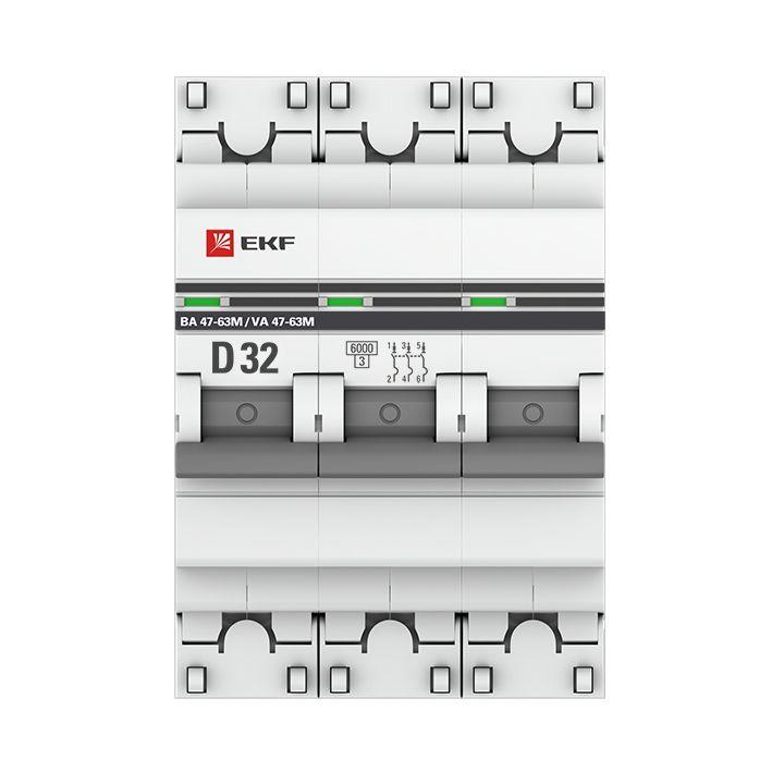 Выключатель автоматический модульный 3п D 32А 6кА ВА 47-63M с одним магнит. расцеп. EKF mcb4763m-6-3-32D-pro