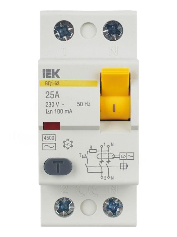Выключатель дифференциального тока (УЗО) 2п 25А 100мА тип AC ВД1-63 IEK MDV10-2-025-100