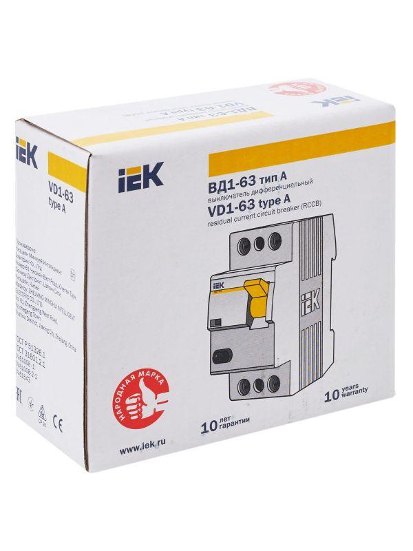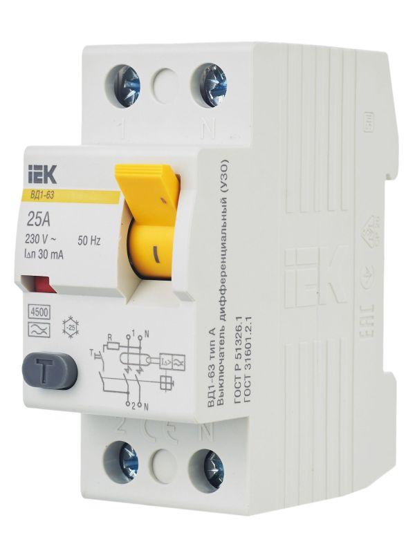 Выключатель дифференциального тока (УЗО) 2п 25А 30мА тип A ВД1-63 IEK MDV11-2-025-030