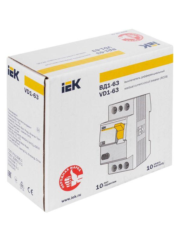 | Наименование производителя: | УЗО ВД1-63 2Р 63А 100мА ИЭК |