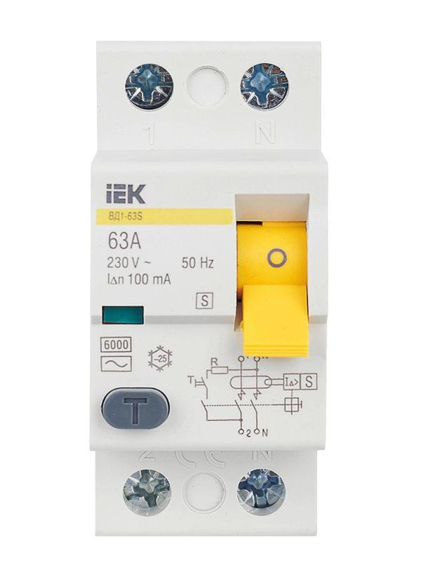 Выключатель дифференциального тока (УЗО) 2п 63А 100мА тип ACS ВД1-63S IEK MDV12-2-063-100
