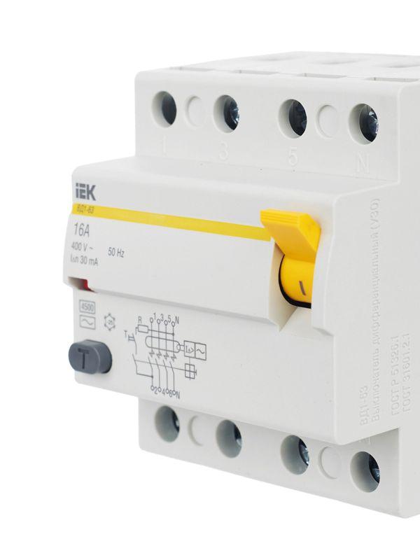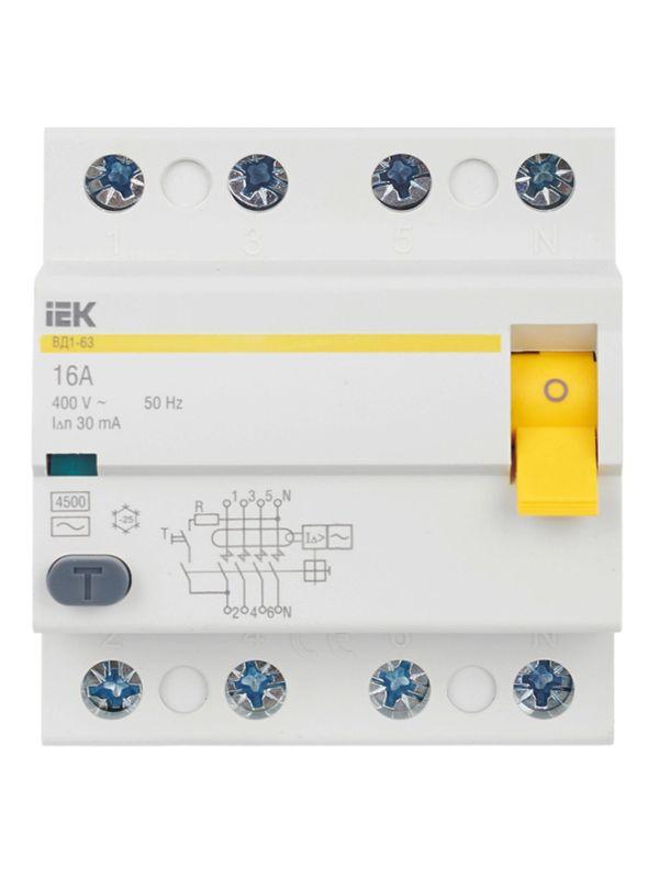 | Наименование производителя: | УЗО ВД1-63 4Р 16А 30мА ИЭК |