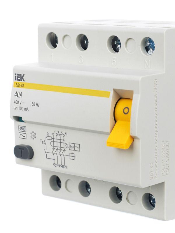 | Наименование производителя: | УЗО ВД1-63 4Р 40А 100мА ИЭК |