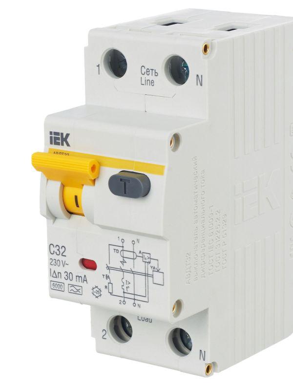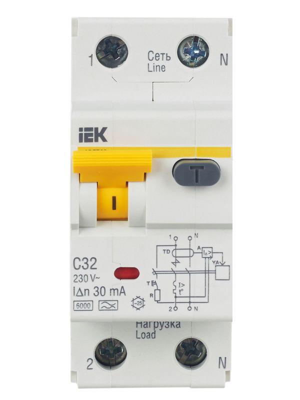 Выключатель автоматический дифференциального тока 2п (1P+N) C 32А 30мА тип A 6кА АВДТ-32 IEK MAD22-5-032-C-30
