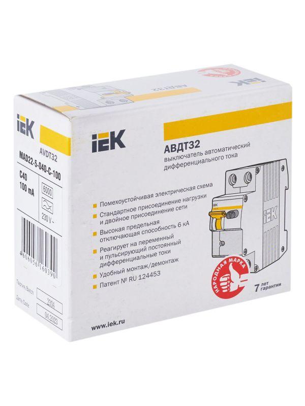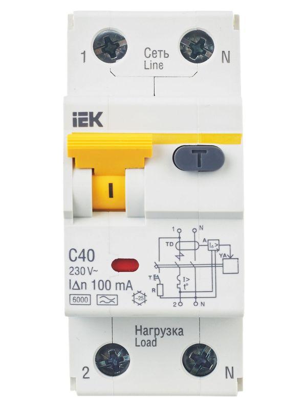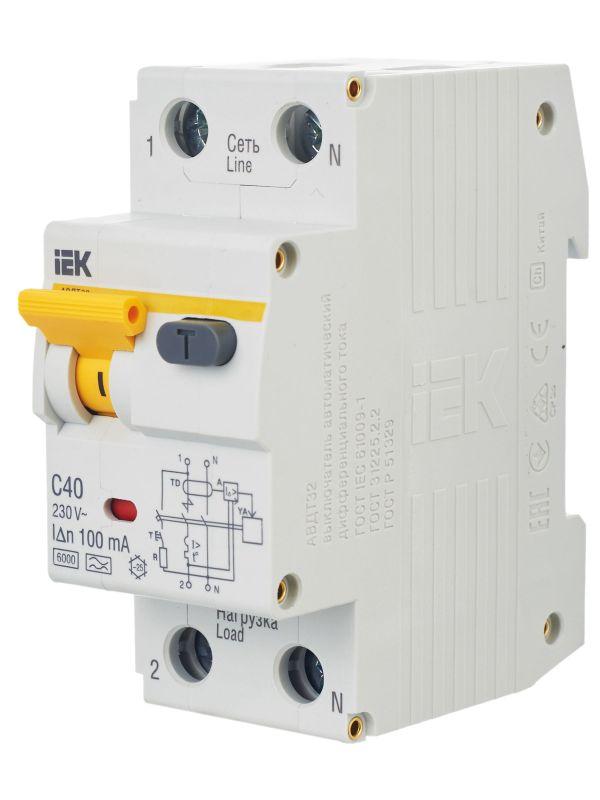 Выключатель автоматический дифференциального тока 2п (1P+N) C 40А 100мА тип A 6кА АВДТ-32 IEK MAD22-5-040-C-100
