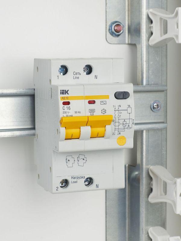 Выключатель автоматический дифференциального тока 2п C 16А 30мА тип AC 4.5кА АД-12 IEK MAD10-2-016-C-030