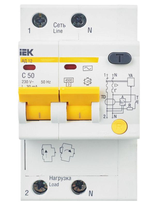 Диф.автомат АД12 2Р 50А 30мА ИЭК