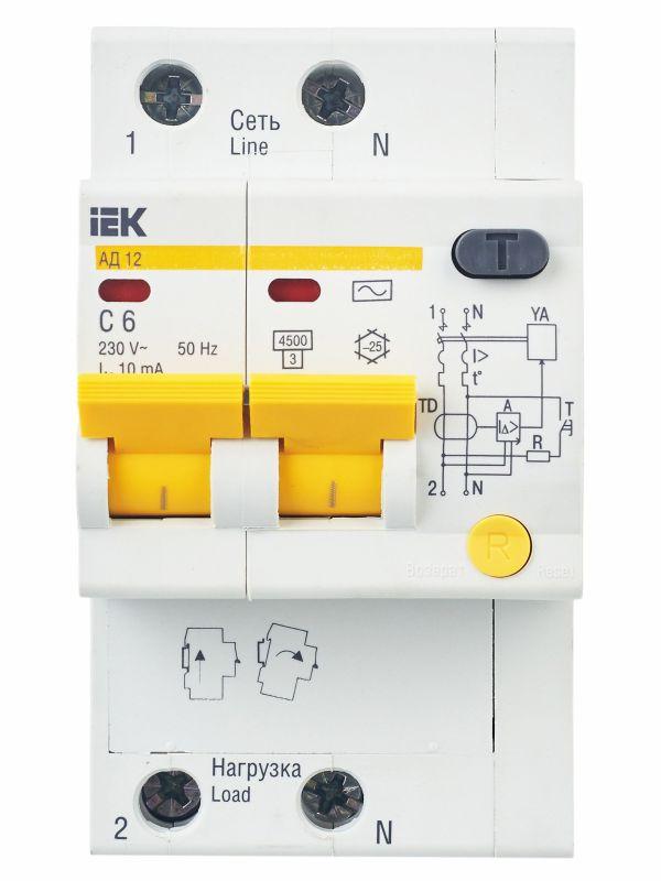 Диф.автомат АД12 2Р 6А 10мА ИЭК