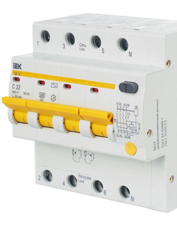 Диф.автомат АД14 4Р 32А 30мА ИЭК