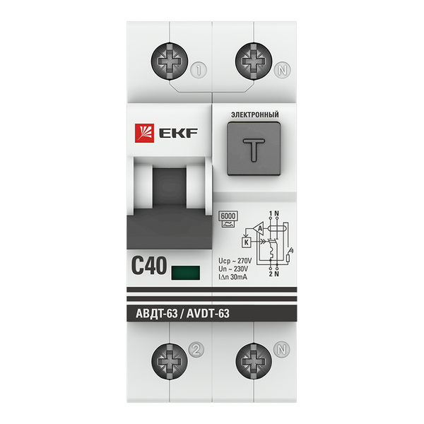Выключатель автоматический дифференциального тока С 40А 30мА тип А 6кА АВДТ-63 (электрон.) PROxima EKF DA63-40-30e