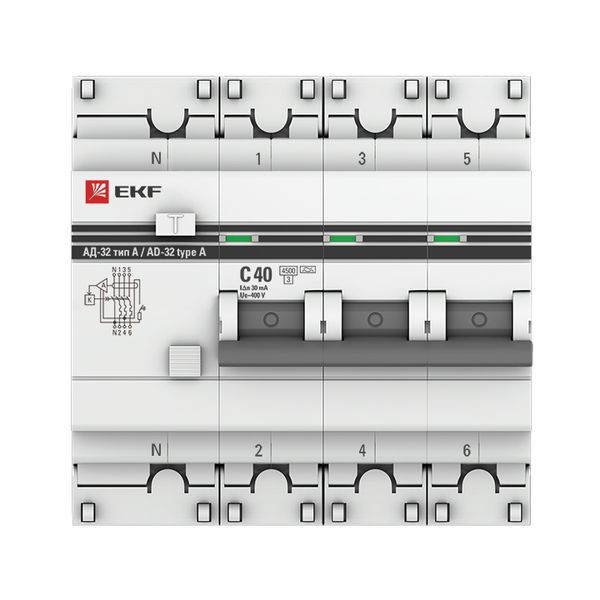 Выключатель автоматический дифференциального тока 4п (3P+N) 40А 30мА тип A АД-32 PROxima EKF DA32-40-30-4P-a-pro