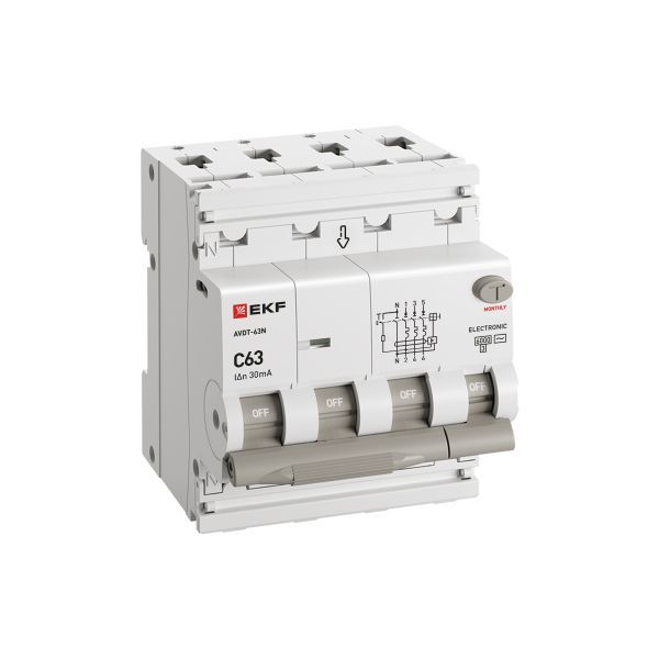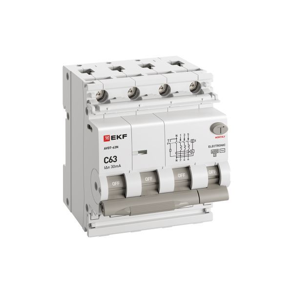 Выключатель автоматический дифференциального тока 4п (3P+N) C 63А 30мА тип AC 6кА АВДТ-63N электронный PROxima EKF D63N46E63C30