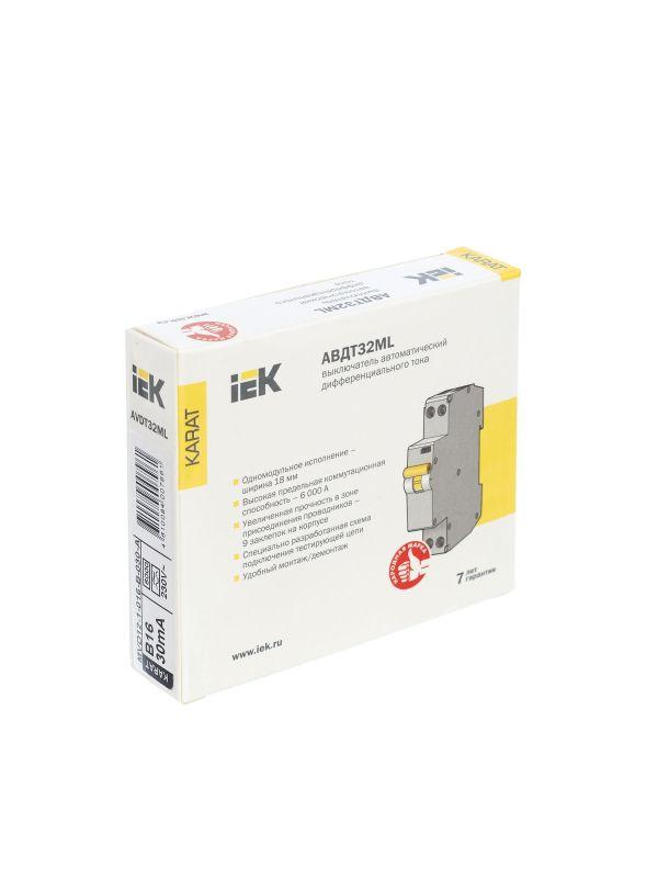 Выключатель автоматический дифференциального тока B 16А 30мА тип A АВДТ32ML KARAT IEK MVD12-1-016-B-030-A