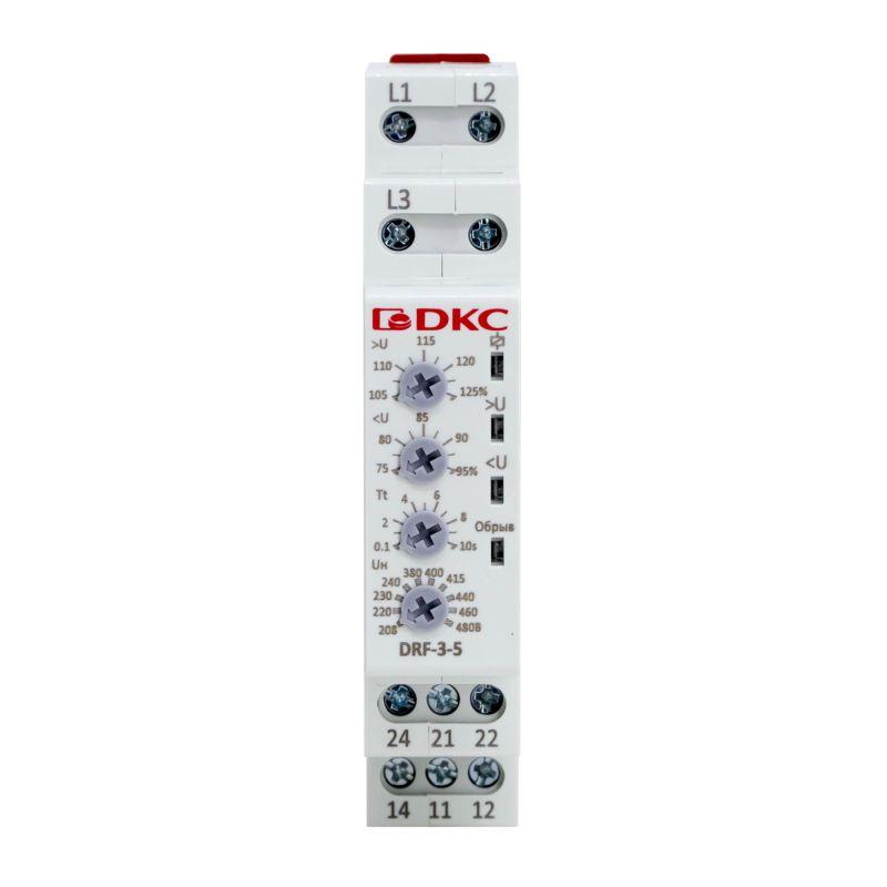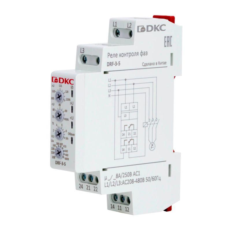 Реле контроля фаз 3ф тип DRF контроль напряжения контроль обрыва фаз конфигурация контакта 2CO 208-480В DKC DRF-3-5
