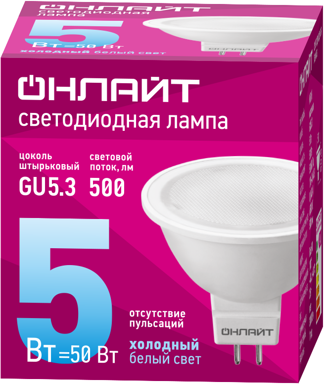 Лампа светодиодная 61 133 OLL-MR16-5-230-6.5K-GU5.3 5Вт ОНЛАЙТ 61133