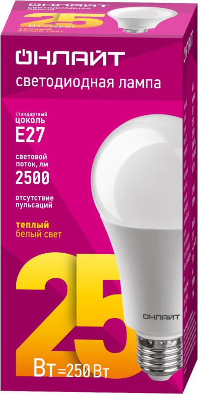 Лампа светодиодная 61 953 OLL-A60-25-230-2.7K-E27 25Вт ОНЛАЙТ 61953