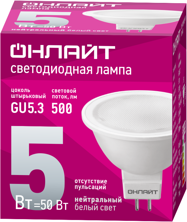 Лампа светодиодная 71 638 OLL-MR16-5-230-4K-GU5.3 5Вт 4000К нейтр. бел. GU5.3 370лм 176-264В ОНЛАЙТ 71638