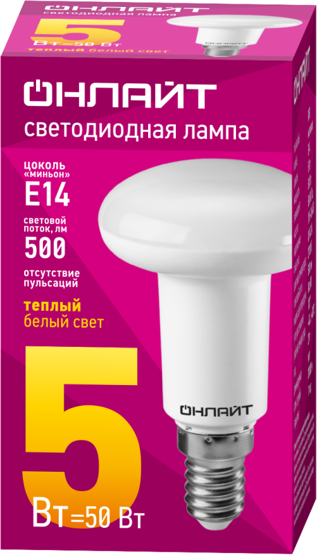 Лампа светодиодная 71 651 OLL-R50-5-230-2.7K-E14 5Вт 2700К тепл. бел. E14 360лм 220-240В ОНЛАЙТ 71651