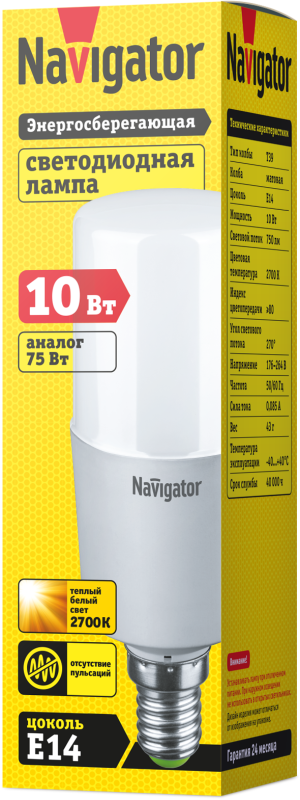 Лампа светодиодная 61 468 NLL-T39-10-230-2.7K-E14 10Вт линейная матовая 2700К тепл. бел. E14 750лм 176-264В Navigator 61468