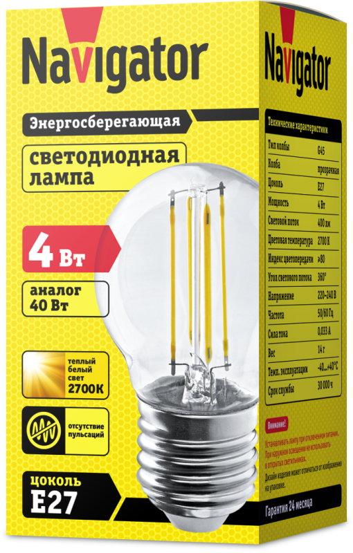 Лампа светодиодная 71 310 NLL-F-G45-4-230-2.7K-E27 4Вт шар 2700К тепл. бел. E27 350лм 220-240В Navigator 71310