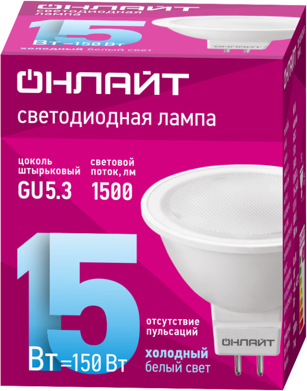 Лампа светодиодная 90 466 OLL-MR16-15-230-6.5K-GU5.3 ОНЛАЙТ 90466