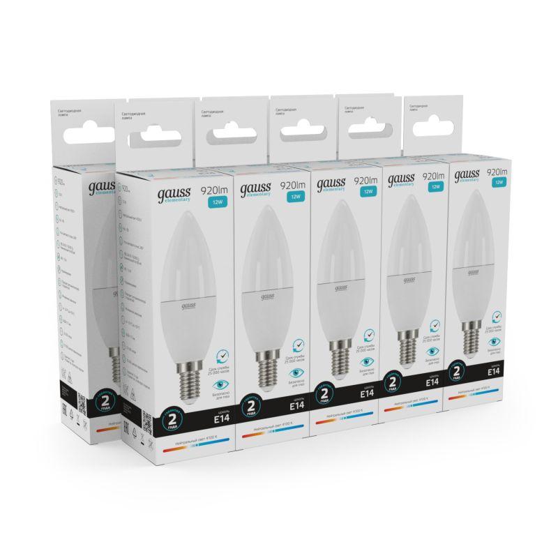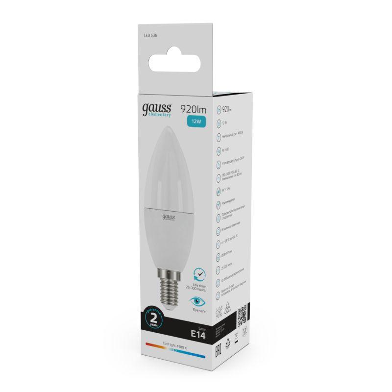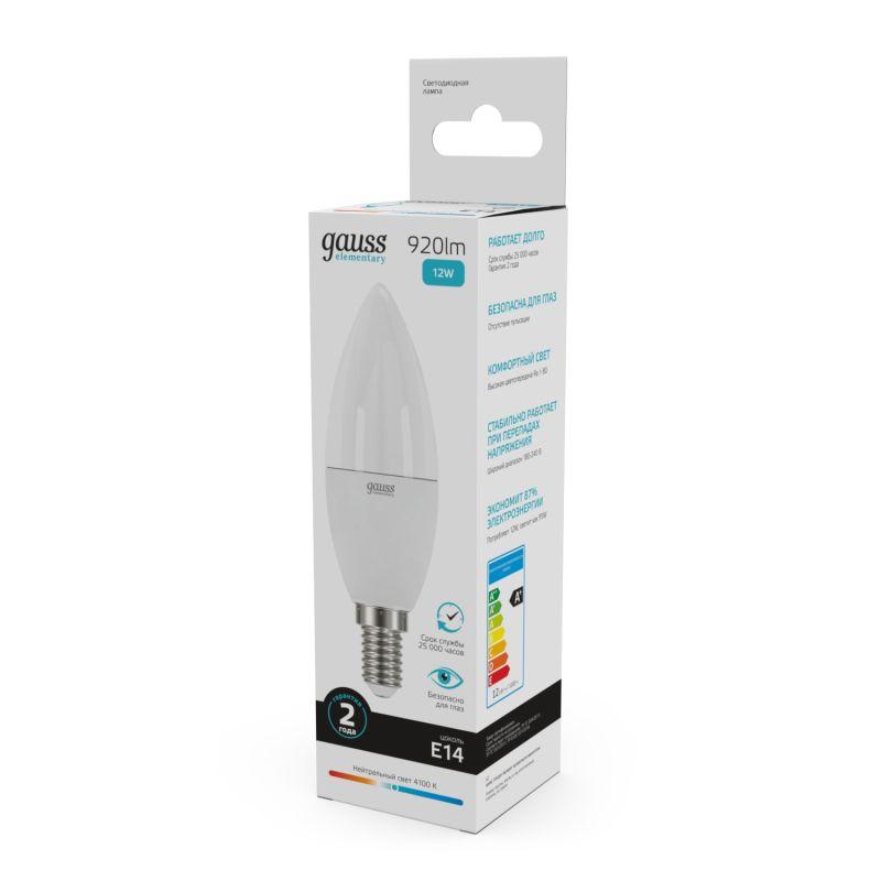 Лампа светодиодная Elementary 12Вт свеча 4100К нейтр. бел. E14 920лм GAUSS 33122