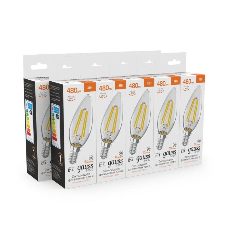 Лампа светодиодная филаментная Basic Filament 4Вт Свеча 3000К E14 480лм GAUSS 50312142