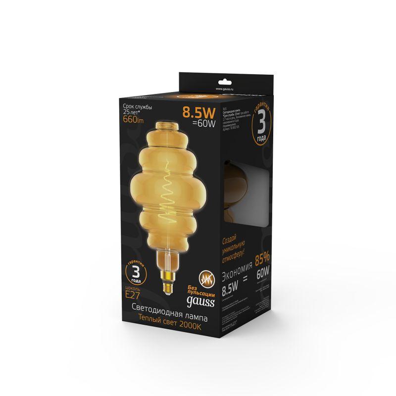 Лампа светодиодная филаментная Black Filament 8.5Вт Honeycomb золотая 2000К тепл. бел. E27 660лм GAUSS 161802105