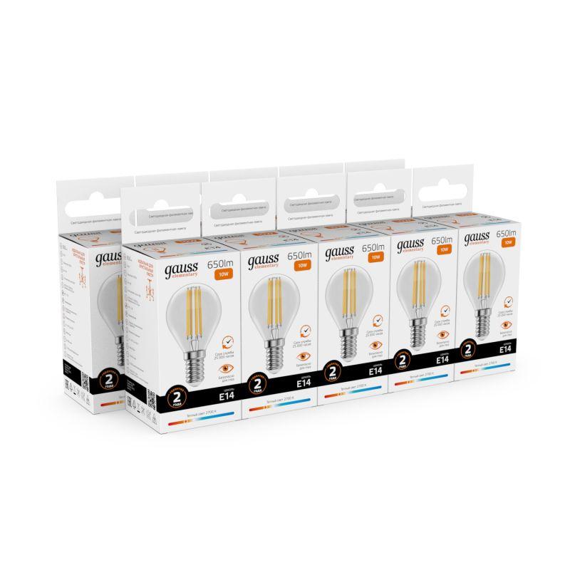 Лампа светодиодная филаментная Filament Elementary 10Вт шар 2700К Е14 650лм GAUSS 52110