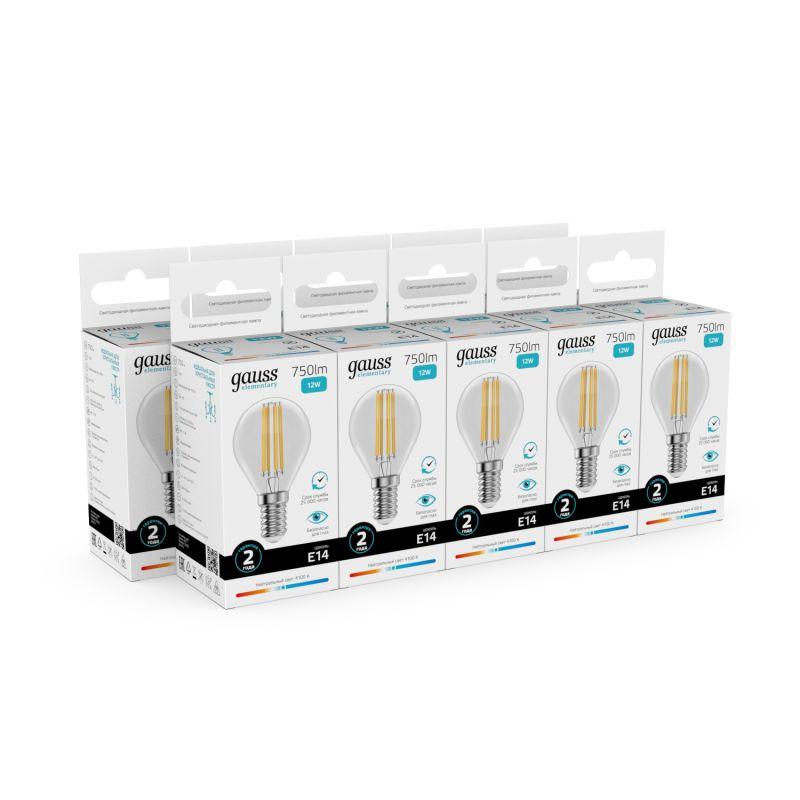 Лампа светодиодная филаментная Filament Elementary 12Вт шар 4100К Е14 750лм GAUSS 52122