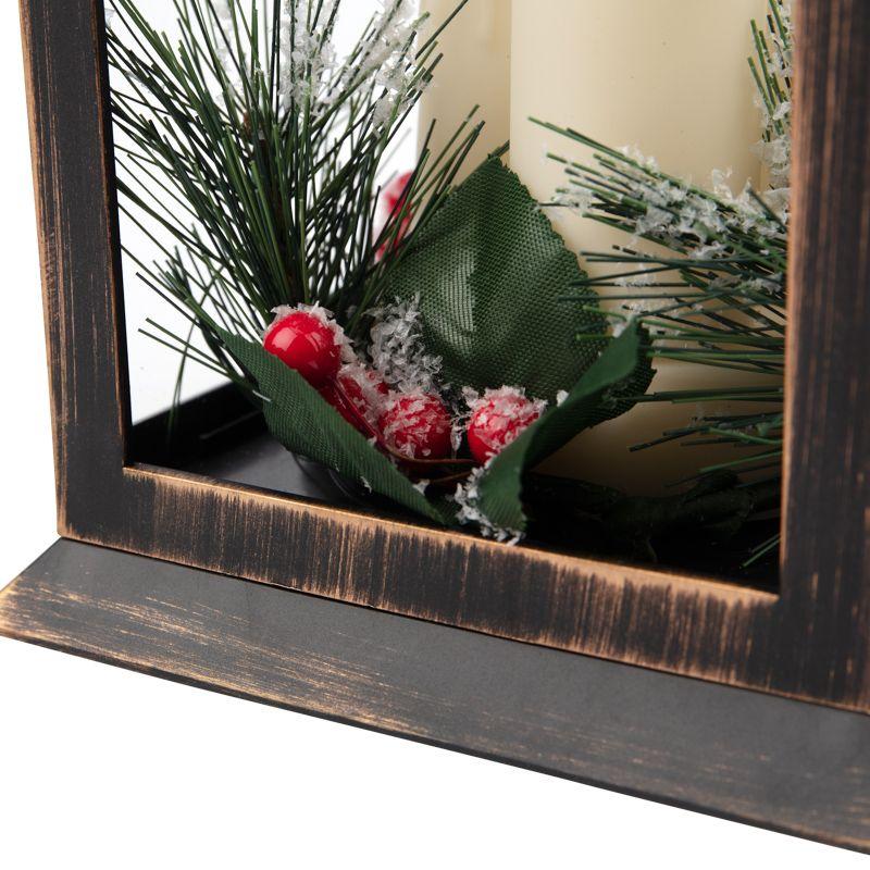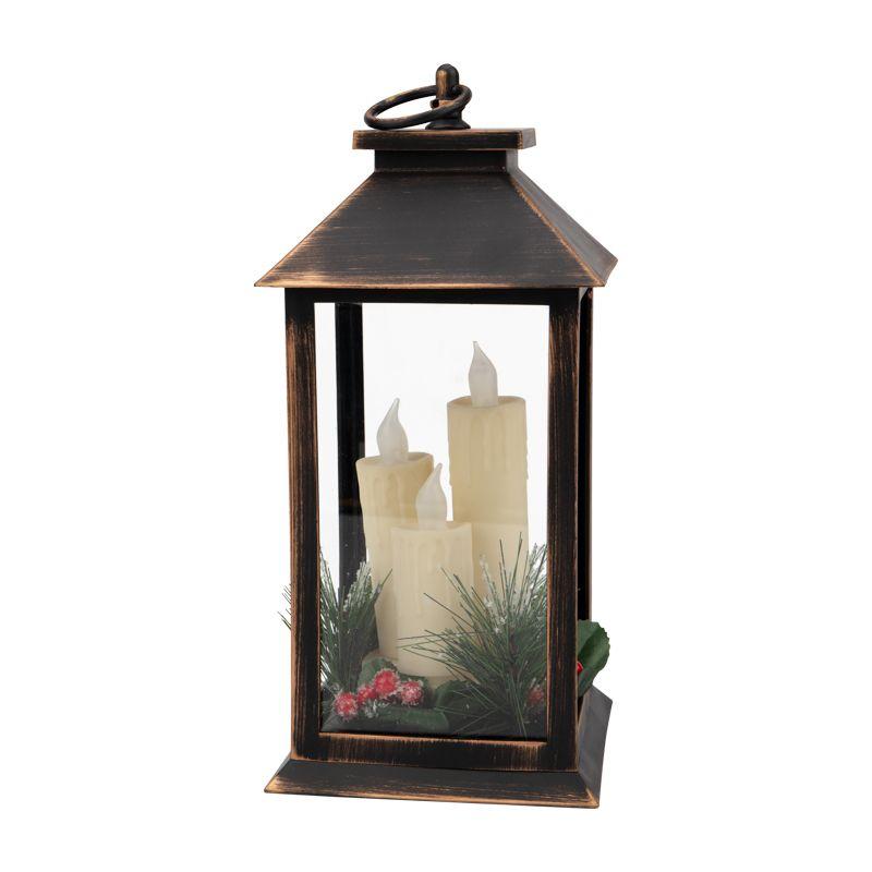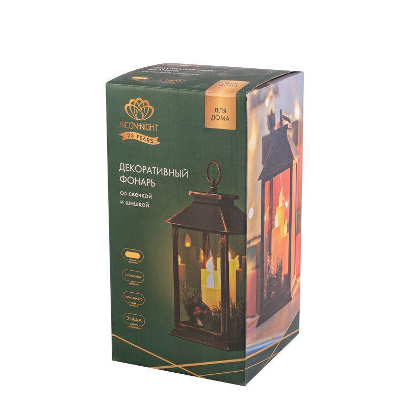 Фонарь декоративный 14х14х27см тепл. бел. со свечкой и шишкой корпус бронз. Neon-Night 513-048