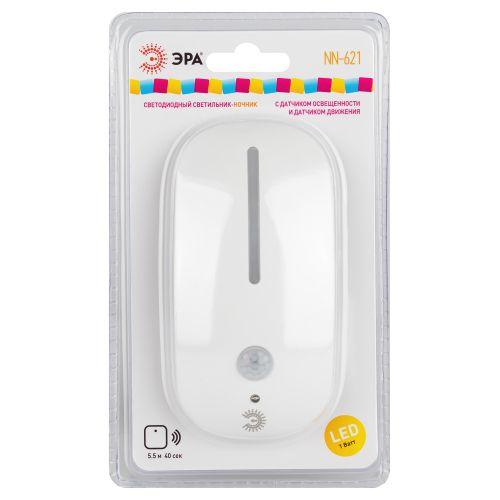 Светильник светодиодный NN-621-LS-MS-W ночник в розетку с датчиком освещенности и датчиком движения бел. ЭРА Б0057212