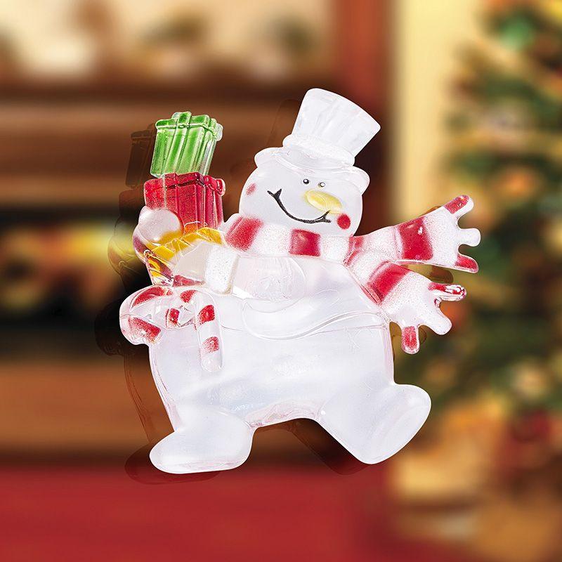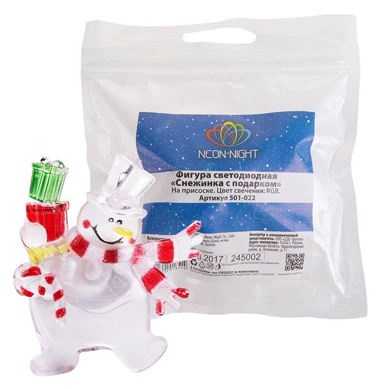 Фигура светодиодная "Снеговик с подарком" 75х90х10мм 1LED RGB 0.1Вт 4.5В IP20 на присоске элементы питания 2хCR2032 (в компл.) Neon-Night 501-022