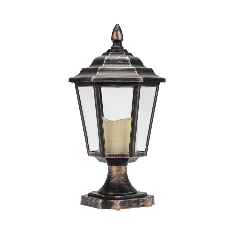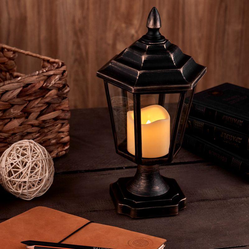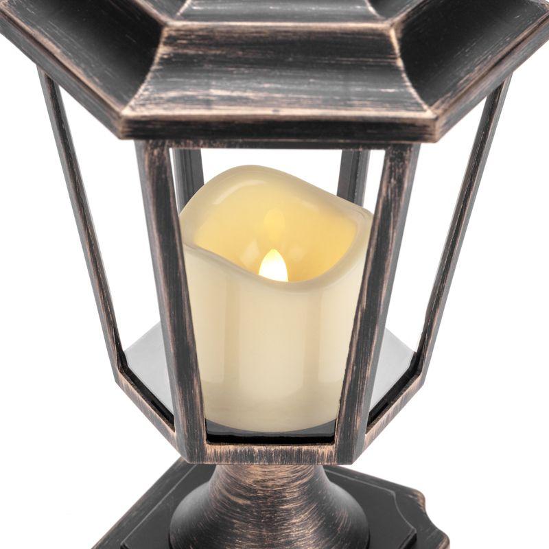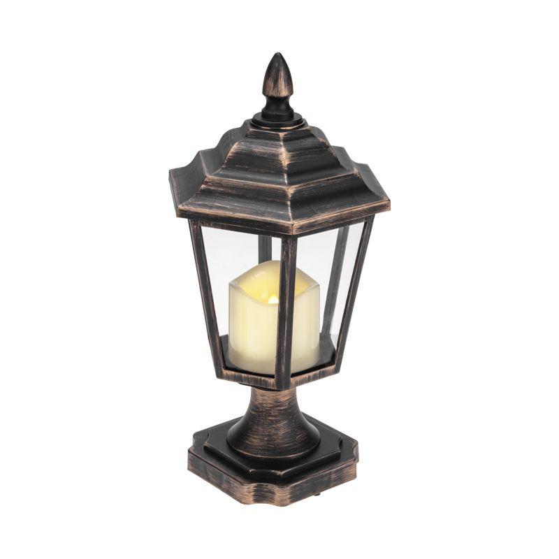 Фонарь декоративный на подставке со свечкой бронзовый корпус размер 14.5х17х31см тепл. бел. Neon-Night 513-058
