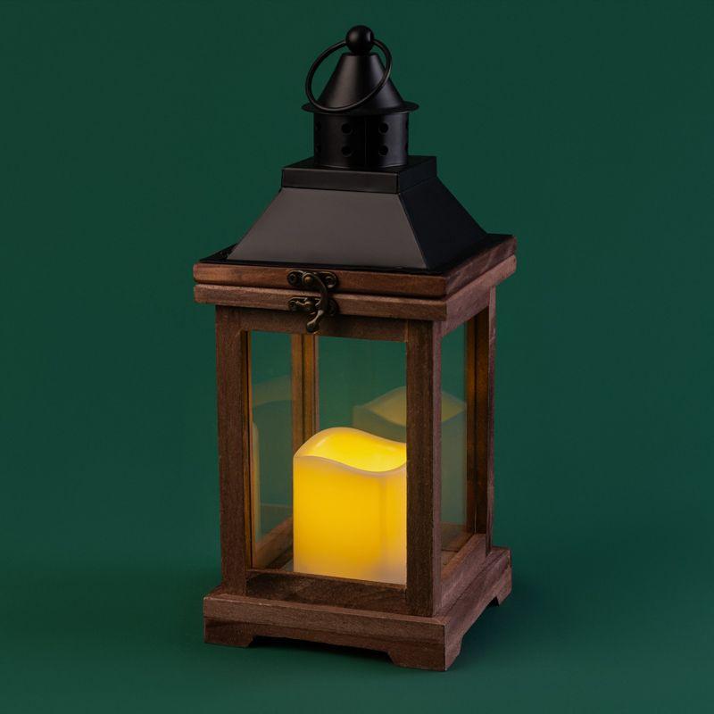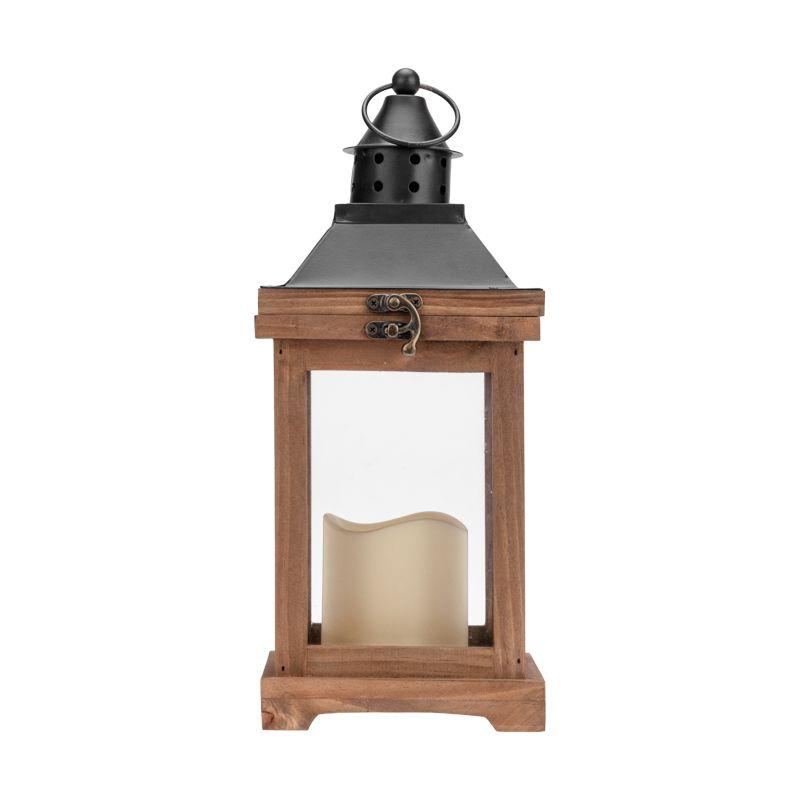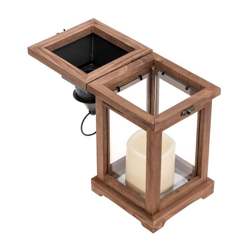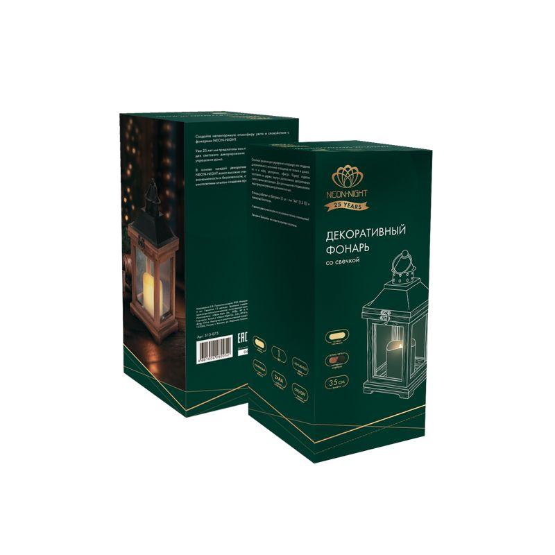 Фонарь декоративный со свечкой корпус из дерева размер 14х14х35cм тепл. бел. Neon-Night 513-075