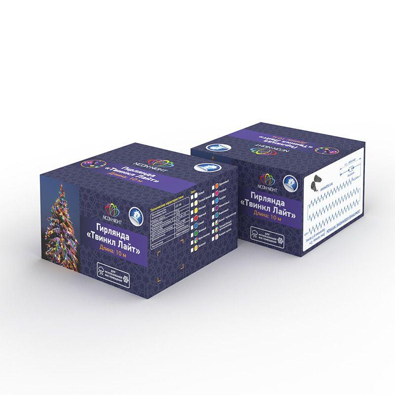 Гирлянда светодиодная "Твинкл Лайт" 20м 200LED мультиколор 20Вт 220-240В IP65 8 режимов провод ПВХ черн. (контроллер не в компл.) Neon-Night 303-149
